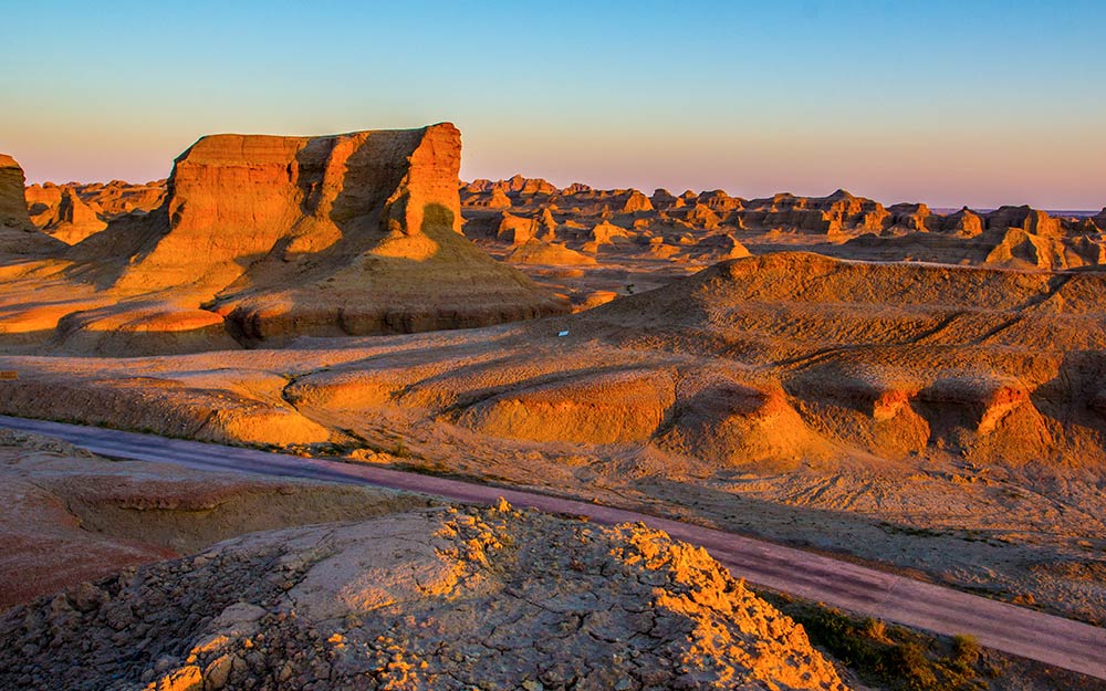 行程景點: 參觀聞名於世的克拉瑪依大油田,《臥虎藏龍》, 拍攝基地地【烏爾禾魔鬼城】,據考察大約一億多年前的白堊紀時,這裡是一個巨大的淡水湖, 湖岸生長著茂密的植物,後來經過兩次大的地殼變動,湖泊變成了間夾著砂岩和泥板的陸地瀚海, 地學上稱它為“戈壁台地”。【獨山子大峽谷】在天山冰雪消融的奎屯河上游,經過河水億萬年的怒吼奔騰和雨水的衝刷、風雪的蝕雕,使兩岸山崖上現出了一幅驚心動魄的自然歷史畫卷.
