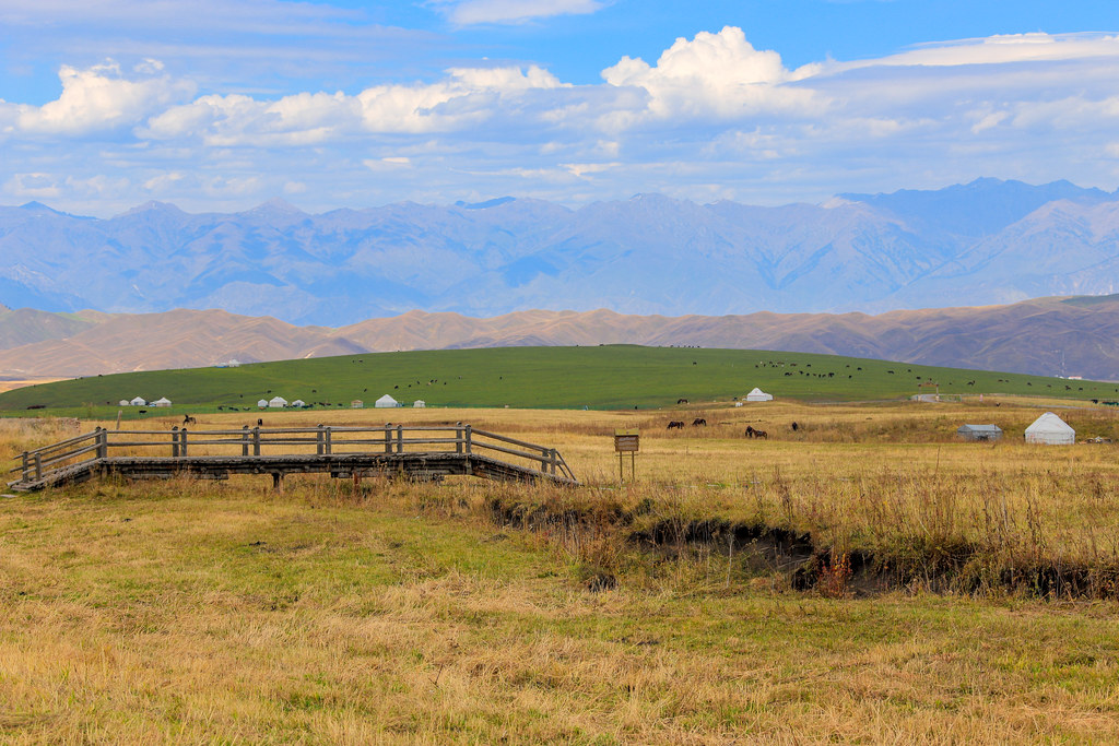 那拉提草原 世界四大河穀草原之一的,位於新疆伊犁河谷之東,是中國最美的高山草原之一。這片遼闊的綠色天地,被雪峰、森林與河流環抱,四季皆有不同風貌。每到夏季,草原如綠毯鋪展,繁花似錦,牛羊悠然點綴其間,牧民帳篷錯落,構成一幅靜謐又生動的草原畫卷。清晨可觀雲霧繚繞的天山日出,傍晚則能欣賞金色陽光灑滿草原的壯麗景象。遊客可騎馬漫遊、品嚐奶茶與手抓肉,感受濃郁的哈薩克族風情。那拉提,是心靈放逐與回歸自然的理想聖地。